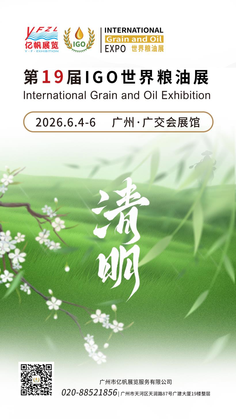 第19届IGO世界粮油展将于2026年6月4-6日在广州广交会展馆举行,诚挚邀请您来参展/参观!